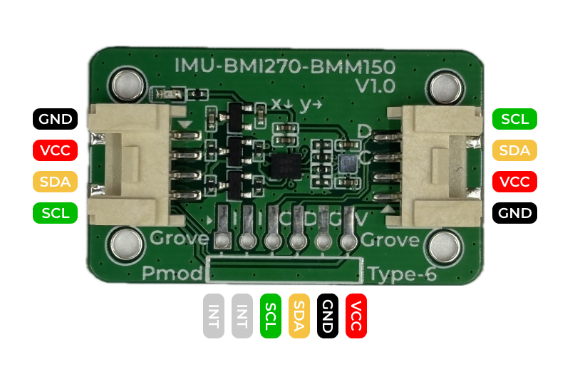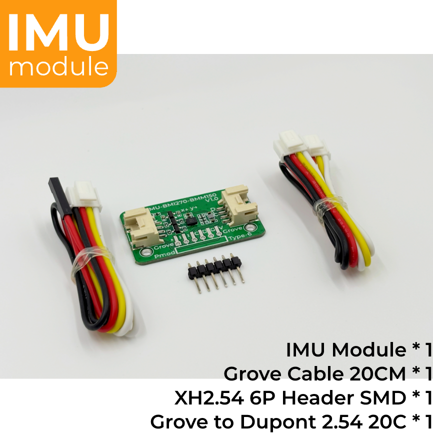 IMU Module 是一款9轴的惯性运动测量单元,采用六轴姿态传感器(BMI270)、三轴地磁式传感器 (BMM150)的方案,测量和检测物体的加速度和角速度 、地磁场方向和强度,可以通过 I2C 接口进行通讯, 可以按需选择 Grove 线和主控板连接或者采用杜邦线与主控板连接。广泛应用于导航 、自动化控制 、机器人技术 、飞行器导航 、地理定位等领域。